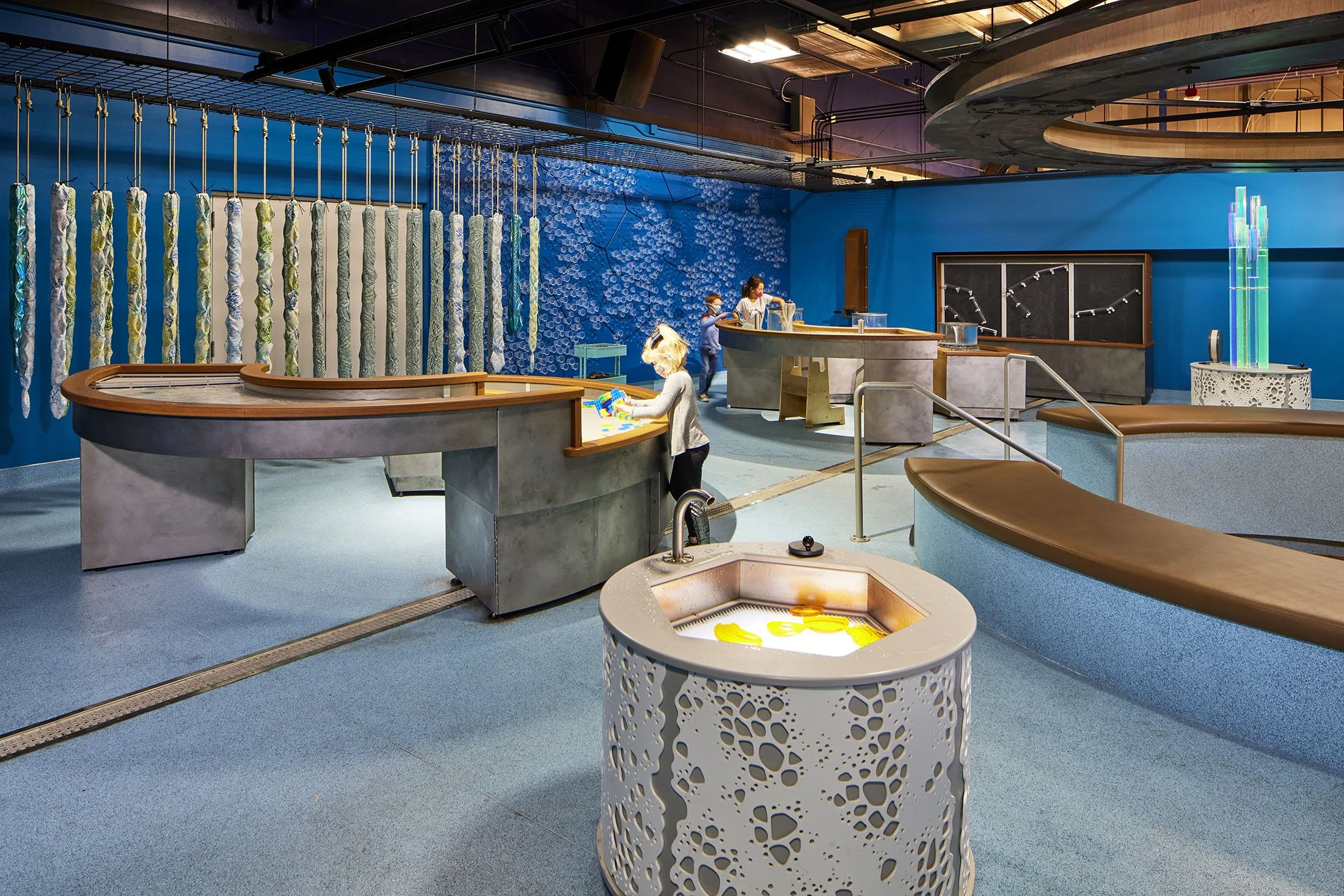 As the exhibit fabricator, Boss Display meticulously translated the unique design aesthetic into the fabrication process, ensuring every detail was carefully considered. Drawing inspiration from the surrounding coastal scenery, the exhibit space was designed to evoke the look and feel of undersea forests and tide pools. Water-themed interactives, including the vortex table, water light table, and bubbler exhibit, were crafted with a distinctive coral texture, further enhancing the immersive experience and creating a seamless connection between the exhibits and the coastal environment.