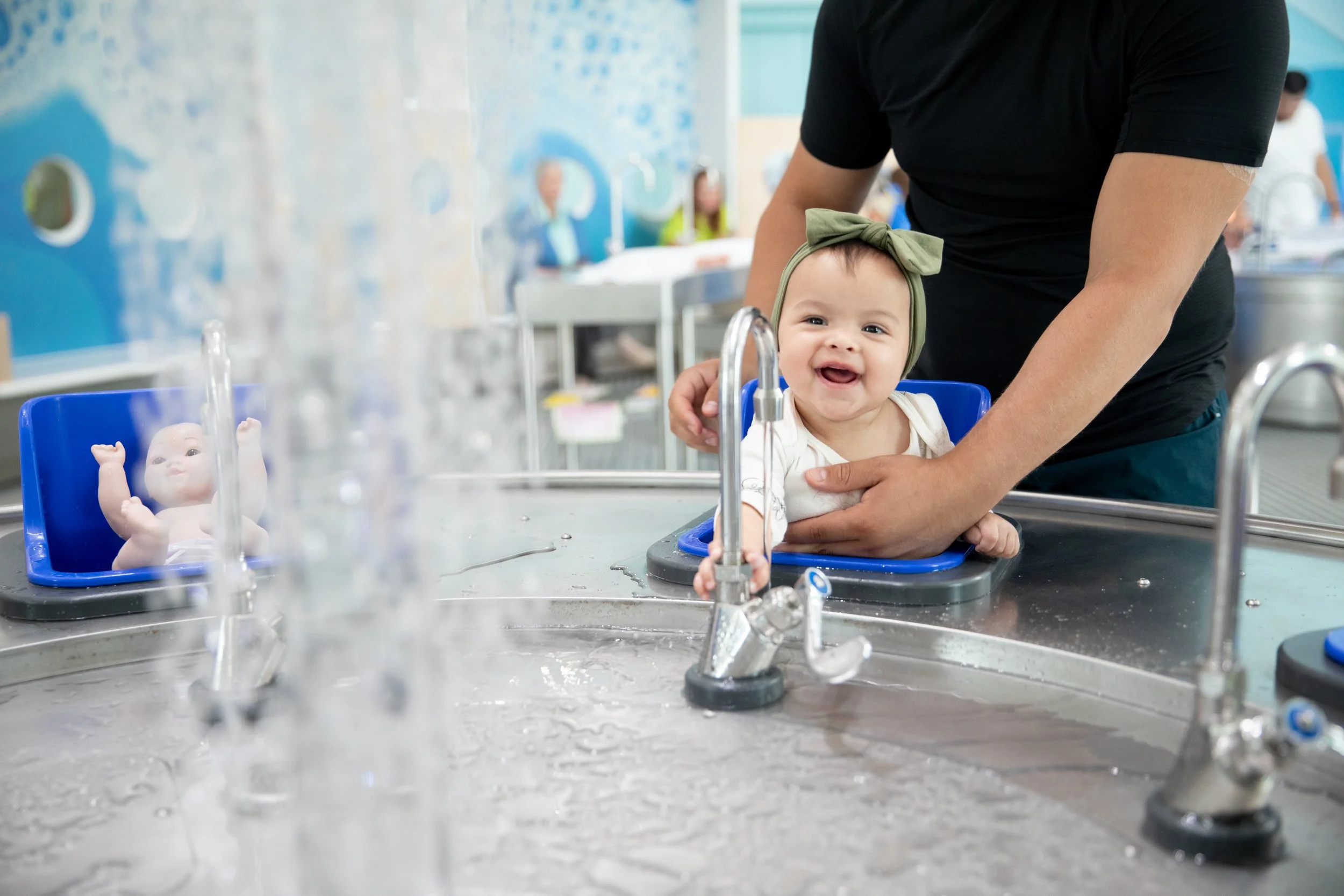 Sink & bath station | Guests can rinse off baby dolls in the miniature bath stations using water from the sinks.