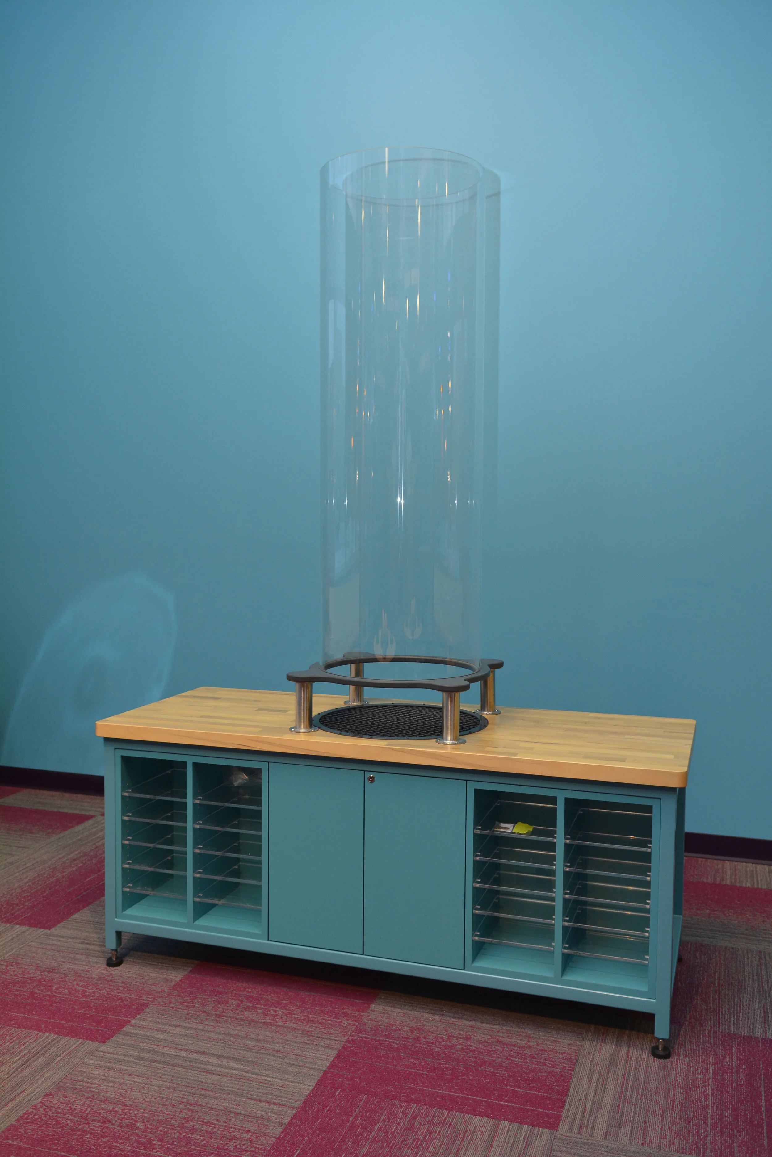 Grab a scarf and throw it into the opening at the bottom of the tube then watch as it flies into the sky slowly floating back down.