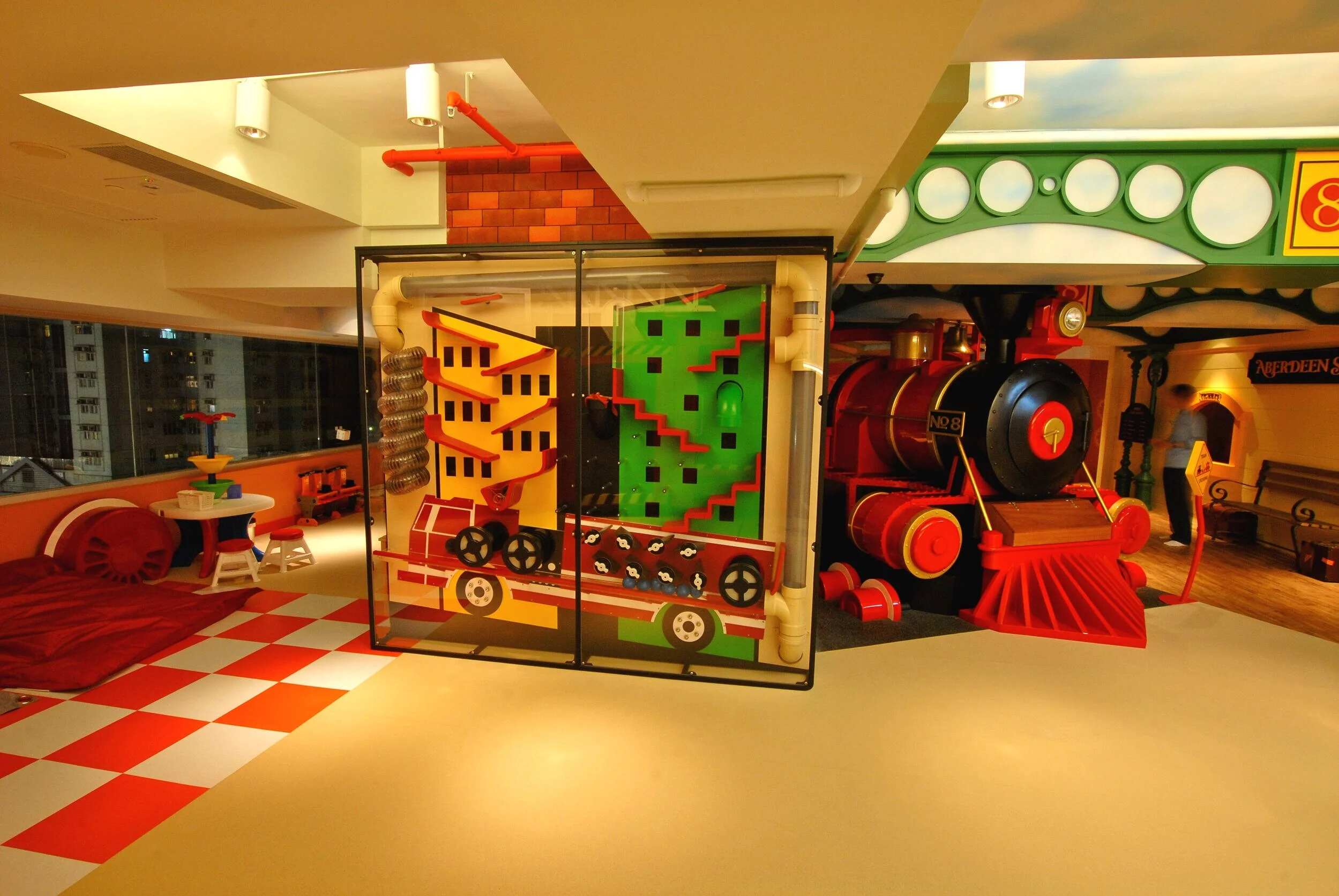 This themed gravitron depicts a building fire with a fire truck coming to the rescue. Two blowers on the back of the exhibit launch plastic balls into the gravitron, giving users the ability to manipulate the path the balls take through pipes, a plink wall, and adjustable ramps.